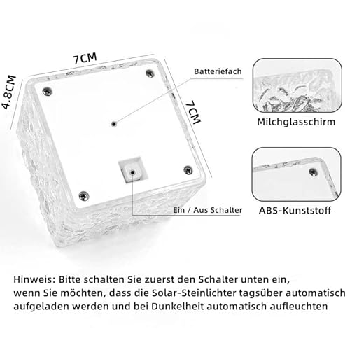 【Ampia applicazione】Forma di cubetto di ghiaccio quadrato, realizzato in vetro smerigliato e plastica ABS, resistente e leggero, e con colore bianco caldo della luce, decorare i vostri passi, patio, marciapiede, prato, balcone, campeggio. Aggiungono una calda atmosfera festiva per Natale, San Valentino, feste, matrimoni.