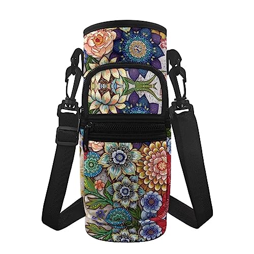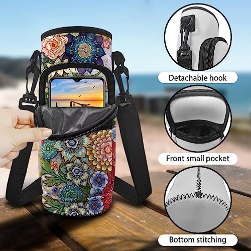 Howilath Boho Bright Blossom Floral Water Bottle Carrier Mandala Flower Water Bottle Sling Portable Water Bottle Sleeve