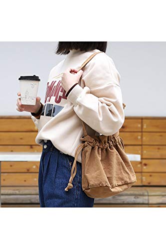 Howoo Donne Tela Coulisse Borsa a secchiello Piccolo Borsa a Tracolla Mini Casuale Borsetta Marrone