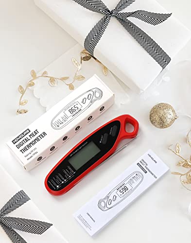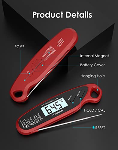 Hoyiours Termometro Digitale da Cucina Termometro per carne a lettura istantanea, sonda lunga, ampio display LCD Termometro Forno con Doppio Magnete per Carne, BBQ, ecc.(Rosso)