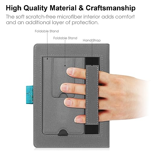 【2 supporti pieghevoli】: 2 supporti regolabili supportano il tuo dispositivo con più angolazioni, ti offrono la migliore esperienza di lettura. Il design elastico del cinturino da polso offre un'esperienza di lettura comoda e sicura con una sola mano.