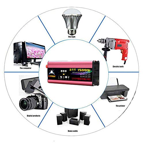 HPDOW Invertitore di Potenza 1500 W(Picco 3000W) convertitore DC 12 V/ 24Va V AC 230 V Power Inverter, Convertitore Auto/Batteria/Solar Power con Prese CA e Porte USB,12V