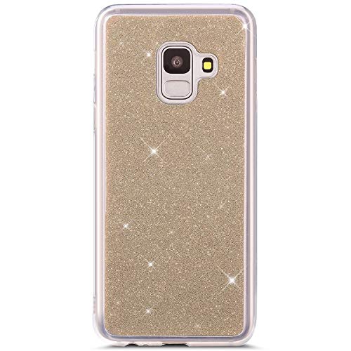 Hpory Compatibile con Samsung Galaxy J6 2018 Custodia Morbido Gel Silicone TPU Cover Bumper Protezione Backcover con Brillantini/Glitters Antishock e Antiurto Gomma Shell Ultra Sottile Cover, Oro