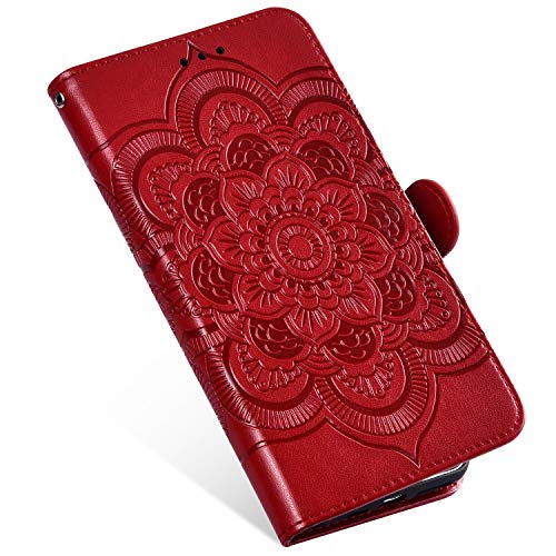 Hpory Cover Compatibile con Samsung Galaxy A10 Custodia Case Ultra Folio Flip Stile Pelle Libro con Magnetic Closure Paraurt, Tinta Unita Cover con Supporto di Stand/Strap/Carte Slot, Rossa