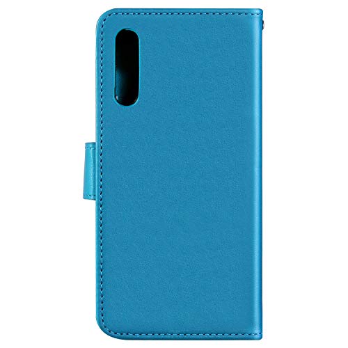 Hpory Cover Galaxy A50/A30S/A50S, Custodia Samsung Galaxy A50 Portafoglio Flip Case in Libro Pelle con Porta Carta di Credito, Kick Stand, Chiusura Magnetica, Tinta Unita Blu Cover - Fiori -Blu