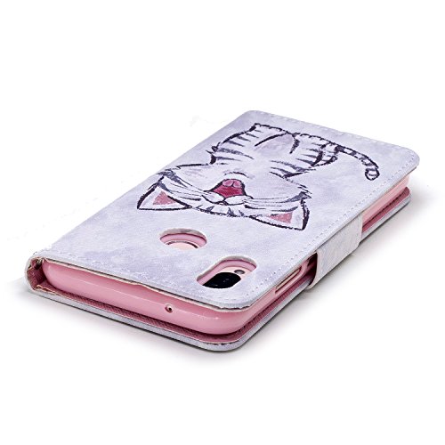 Hpory Cover Huawei P20 Lite, Custodia Huawei P20 Lite, Libro Flip Custodia Caso in Pelle PU, Protettiva Portafoglio Custodia con Funzione Supporto e Porta Carta di Credito +1 Stylus, Gatto
