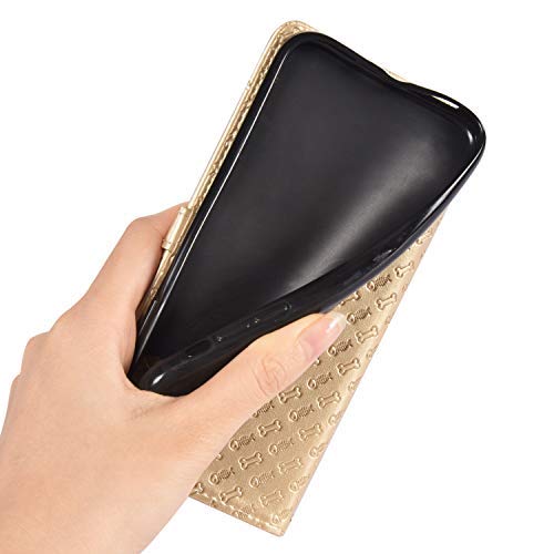 Hpory Cover per Samsung Galaxy S9 Plus PU Pelle Portafoglio Custodia, Bookstyle Wallet Flip Portafoglio Case Caso Copertura con Strap/Supporto di Stand/Carte Slot/Chiusura Ventosa - Oro