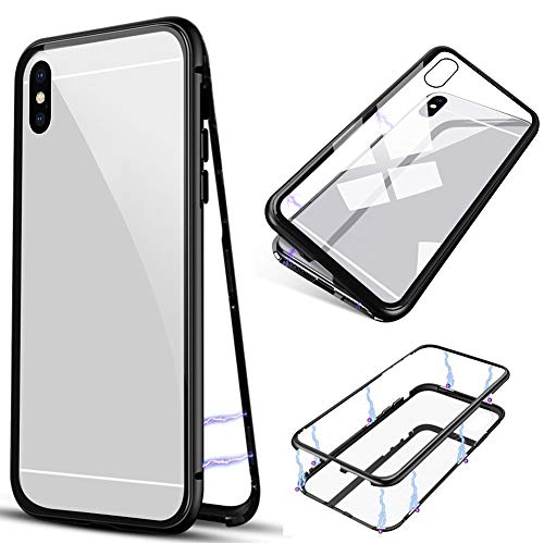 Hpory Custodia Compatibile con iPhone XS Max Cover Magnetic Adsorption Phone Case Ultra Slim Transparent Cover Tempered Glass Cover Posteriore Rigida Hard Back Bumper Custodia, Nera