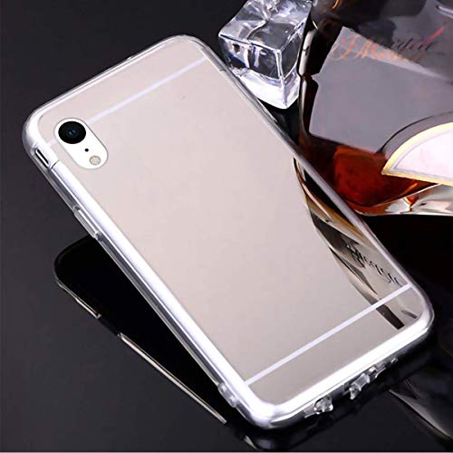 Hpory Specchio Cover Compatibile con iPhone XR Morbido Gel Silicone Custodia TPU Cover Ultra-Slim Mirror Case Bumper Protezione Backcover Antishock e Antiurto Gomma Ultra Sottile Cover, Argento