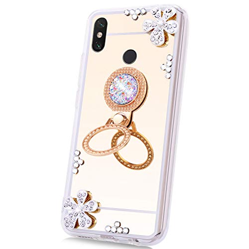 Hpory Specchio Cover compatibile con Redmi Note 5 /Note 5 Pro Morbido Gel Silicone Custodia Glitter Diamante Cover con Ring Supporto Ultra-Slim Mirror Case Bumper Protezione Backcover, Oro
