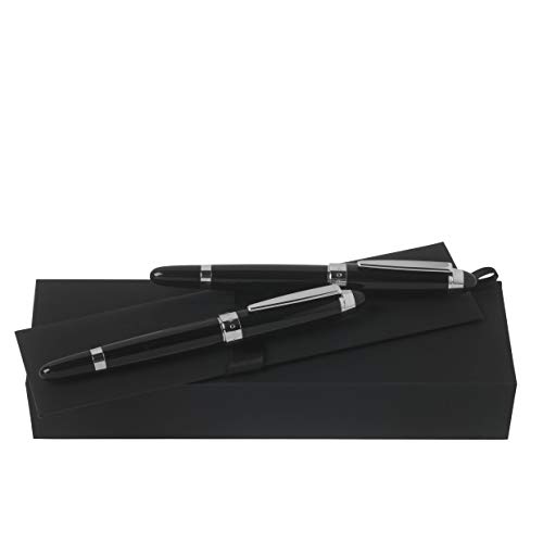 Hugo Boss ICON HPPR501 - Set da scrittura con penna stilografica e penna a sfera in nero e argento, set regalo per uomini e donne, adatto per tutte le occasioni, colore: Nero
