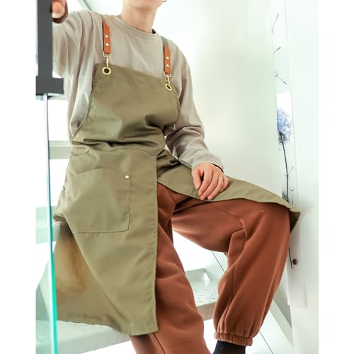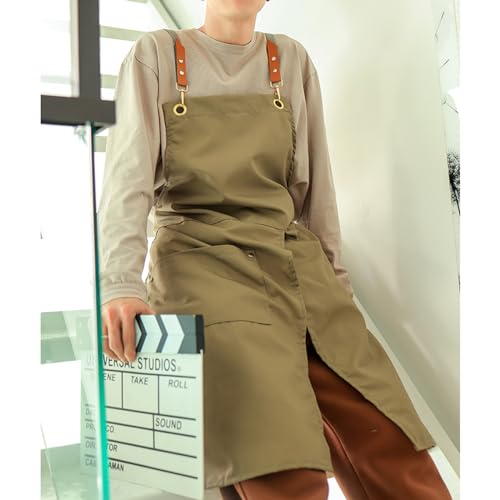 HQPCAHL Grembiule Cucina Gamba Divisa Unisex Grembiuli in Tela Con Tasche Multifunzionale Regolabile Per Falegname Fabbro Pittore Barista Cottura,One Size,Beige