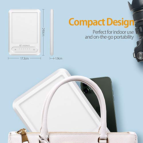 Design compatto, sicuro da usare: questa lampada per terapia della luce con un peso di soli 370 g è compatta e portatile e ha un supporto pieghevole perfetto per l'uso in interni