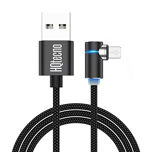 HQtecno Cavo Magnetico 90 Gradi Trasferimento Dati a Ricarica Veloce con luce LED Compatibile per Cellulare Smartphone iPhone, iPad (1m • Cavo iOS)