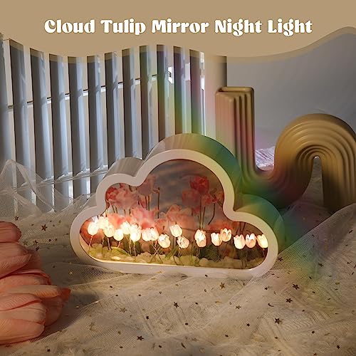 HRGOYY Specchio Lampada Tulipani,Tulip night light,Cloud light,Flower night light può essere utilizzata non solo può essere usata come specchio e decorazione, o il miglior regalo per le amiche donne
