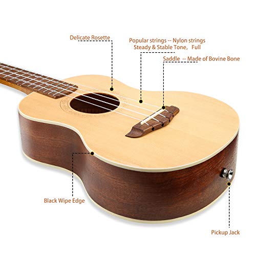 Hricane Ukulele Tenore Solid Top Ukulele con corde ricambio e borsa Gig per principianti e professionisti-26 Pollici