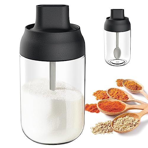 Hriymtd Barattoli per Spezie Ermetici con Coperchio e Cucchiaio Vasi Condimento Trasparenti per Cucina Ideale per Sale, Pepe, Zucchero, Peperoncino e Design Unico Due in Uno