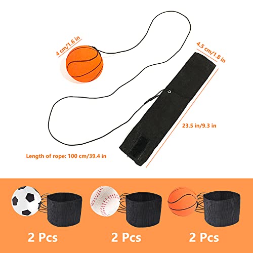 Hriymtd 6 pezzi Palle da Polso Sfere Palle di ritorno da polso con corda elastica Palla di rimbalzo da polso palline rimbalzanti in gomma con polso elastico per l'esercizio o il gioco