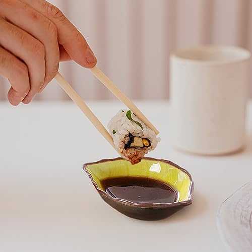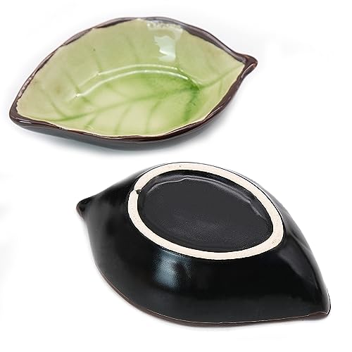 Hriymtd 4 Pezzi Piatto di Salsa Mini Tazza di Ceramica a Forma di Foglio Mini Ciotole di Salsa Aperitivo Ciotole da Dessert Ciotole per Salsa Spezie Dolci Frutta Snack Condimenti