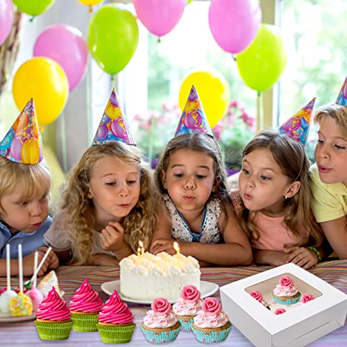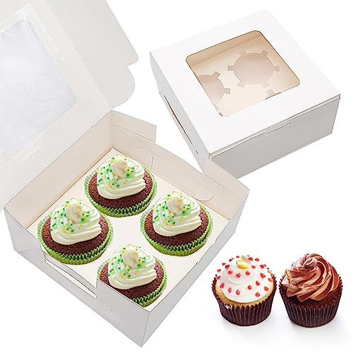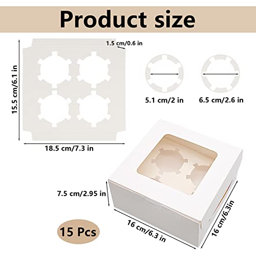 Hriymtd 15 pezzi Scatole per cupcake con finestra e inserti 4 fori Scatole per torte in cartone bianco Scatola da pasticceria Scatola per muffin per biscotti dolci Macarons