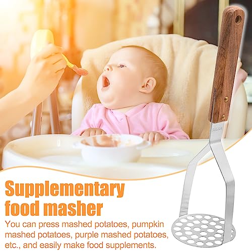 Hriymtd Purea Manuale In Acciaio Inox Schiaccia Patate E Verdure Con Manico In Legno Antiscivolo Strumenti Da Cucina Essenziali Per schiacciare Patate, Verdure E Frutta