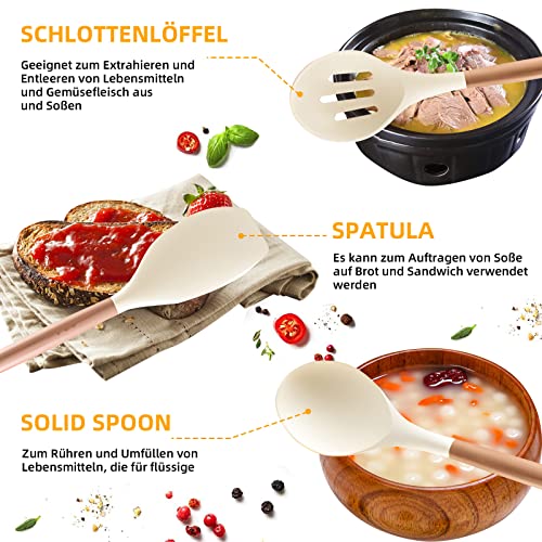 Set da cucina professionale da chef: il set di pentole in silicone è un utensile da cucina multifunzionale, questo set è composto da un cucchiaio con fessura, un cucchiaio, un cucchiaio per pasta, un mestolo, una spatola con fessura, un robusto rotatore, spatole in silicone, spazzole in silicone, una frusta e una pinza da cucina. Per tutti i tipi di esigenze in cucina.