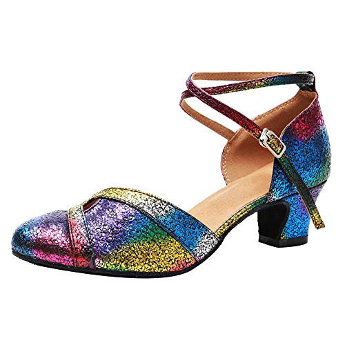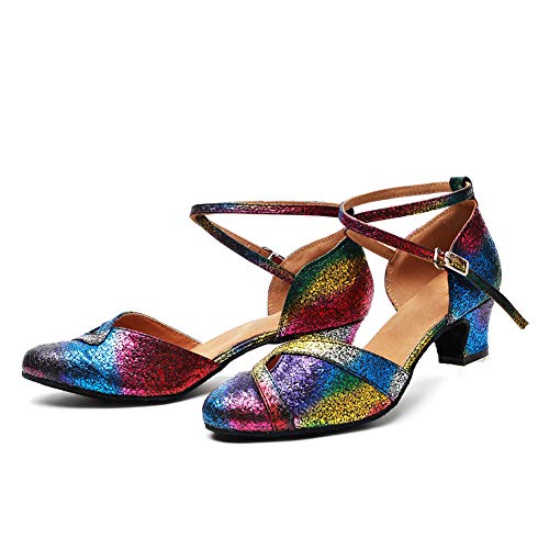 HROYL Scarpe da Ballo Latino Sala Tango Valzer Scarpe da Ballo Donna Chiuse Scarpe da Ballo Glitter,YCL266-Colore Arcobaleno-4.5,EU37.5
