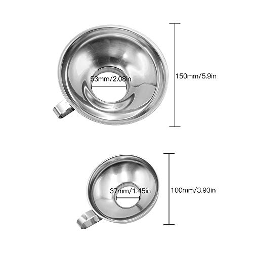 Hrroes 2 Pezzi Imbuto Marmellate Imbuto in Acciaio Inossidabile con Manico per Vasetti a Bocca Regolare e Larga, Trasferimento di Olio Liquido e Marmellata (Silver)