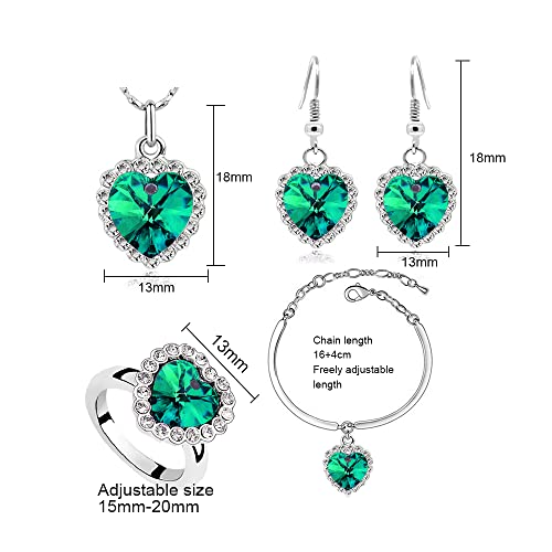 HSAJS Cuore Parure Gioielli per Donna Sposa Collana Orecchini Bracciali e Anelli Set Cuore Cristallo Ciondolo Collana da Donna Gioielli Set Ragazze (Verde)