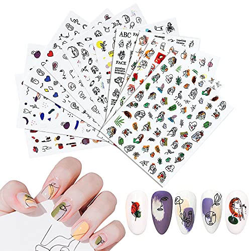 HSAJS 10 fogli Graffiti Adesivi per unghie artistiche, Decalcomanie per unghie 3D Autoadesive Astratte Colorate Faccia divertente Curva per unghie acriliche Decorazione fai da te