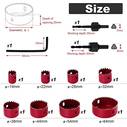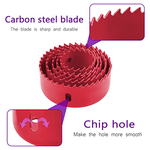 HSEAMALL 8PCS Hole Saw Kit, 19-64mm Acciaio al Carbonio Downlights Drill Bit Tools Cutterfor Legno, Cartongesso, Plastica, Rosso