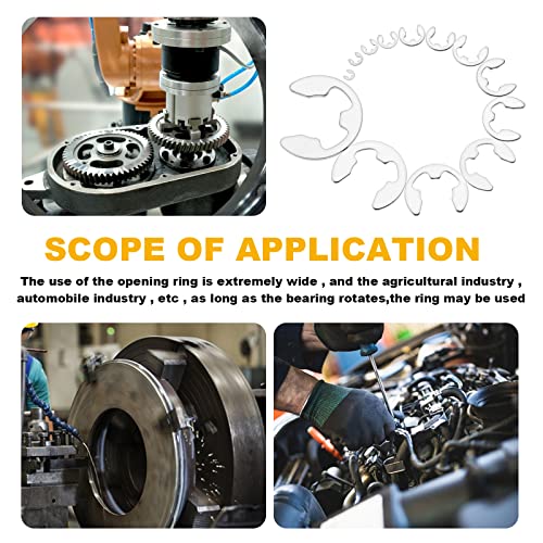 Alta qualità: anello di sicurezza esterno con clip E in acciaio inox, con una superficie liscia e lucida, ha un'elevata durezza e una lunga durata con grandi prestazioni in anti-ruggine e resistente alla corrosione.