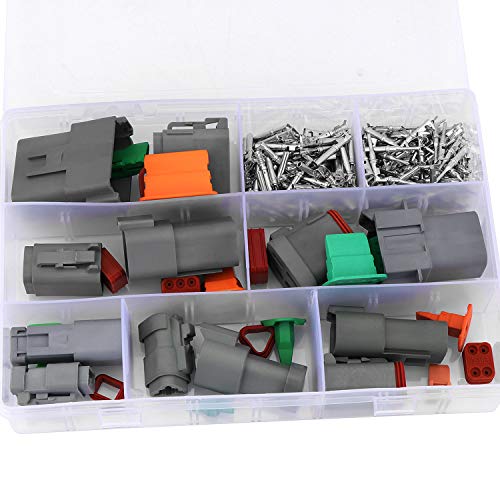 HSEAMALL - Kit connettori DT, 6 set, 2, 3, 4, 6, 8, 12 poli, sigillati, colore: grigio, maschio e femmina, impermeabili, connettori per cavi elettrici, 0,64-1,2 mm