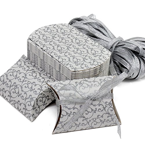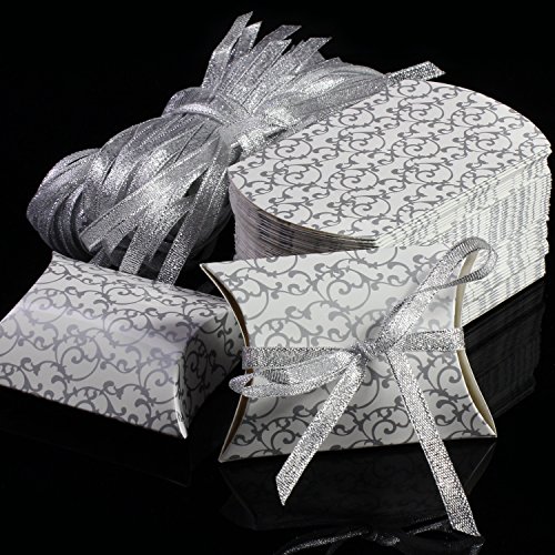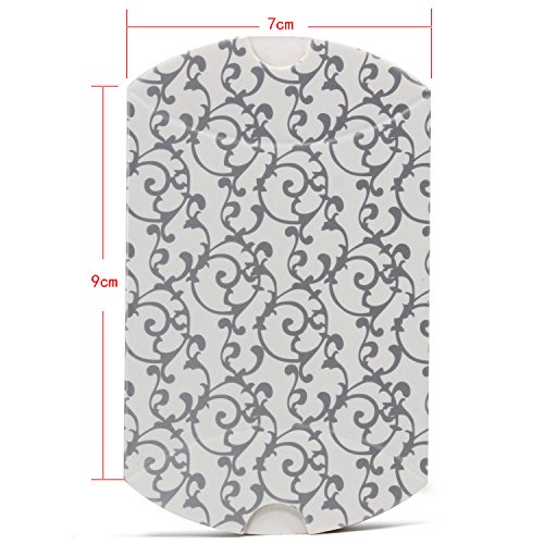 HSeaMall - Scatola in carta kraft stile vintage, contenitore in carta per dolci e caramelle a forma di cuscino, confezione regalo indicata per matrimoni e feste di compleanno, colore: dorato, confezione da 50 pezzi Silver Box