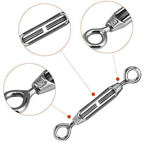 HSEAMALL, Tenditore con gancio e occhiello, in acciaio inox 304, per tendere corde e cavi, M4 Turnbuckle Occhio e Occhio