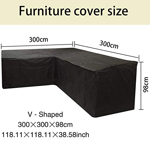 HSGAV Copridivano a Forma di L Copertura Protettiva Divano Angolare Impermeabile Copri Divano Esterno Coperture per Mobili Giardino, Rattan Copertura per Divano Mobili, Nero,300x300x98cm