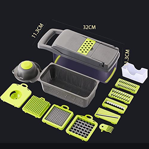 HSIULMY Tritatutto per verdure 12 in 1, multifunzionale Mandoline Affettatrice per patate Cipolle Chopper Cipolle Tritatutto Veggie Chopper con scolapasta e contenitore