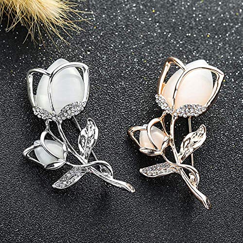Questa elegante spilla con fiori di rosa aggiunge elementi di sogno romantico. Questo design a colori e cristalli scintillanti creati, pietra bianca per occhi di gatto di alta qualità conferiscono alle persone una sensazione alla moda e sognante.
