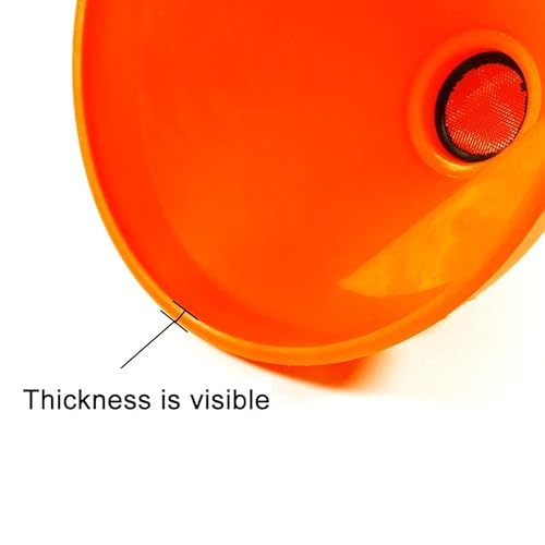 Hsthe Sea Imbuto universale, imbuto con tubo flessibile, imbuto di riempimento olio con bordo alto troppo pieno, ugello di riempimento rimovibile, imbuto olio con filtro, arancione