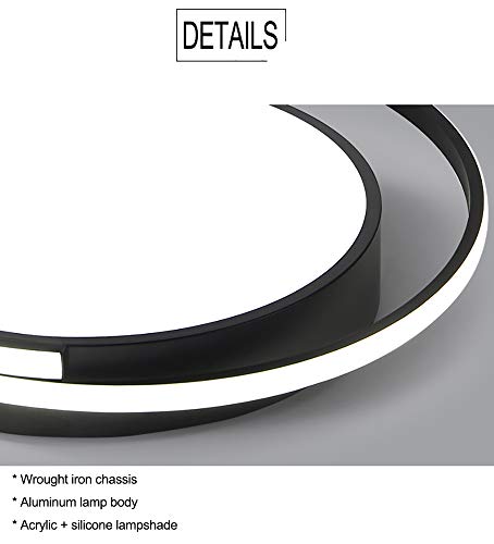 Hsyyz Plafoniera a LED, moderna dimmerabile lampadario per camera da letto con telecomando, plafoniera di design rotonda, dispositivo di illuminazione regolabile in continuo, nero (62)