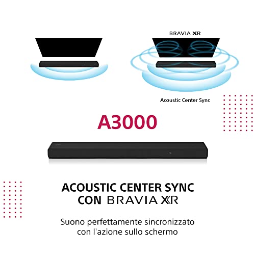 Sony HT-A3000 - Soundbar TV Dolby Atmos a 3.1. Canali, doppio subwoofer integrato, Bluetooth, Controllo Vocale, 360 Spatial Sound Mapping, compatibile con Alexa e Google Assistant