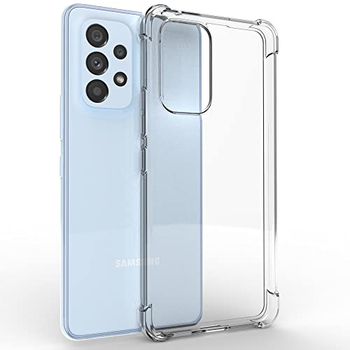 HTDELEC Cover per Samsung Galaxy A53 + 2 Pezzi Pellicola Vetro Temperato,Custodia Trasparente TPU Silicone Case Antiurto Bumper Cover per Samsung Galaxy A53 (Clear-02)