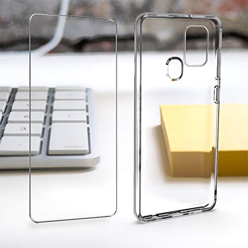 HTDELEC Cover Samsung Galaxy A21s + 2 Pezzi Pellicola Vetro Temperato, Crystal Clear Sottile Morbido TPU Trasparente Silicone Antiurto tettiva Custodia per Samsung Galaxy A21s (Trasparente-01)