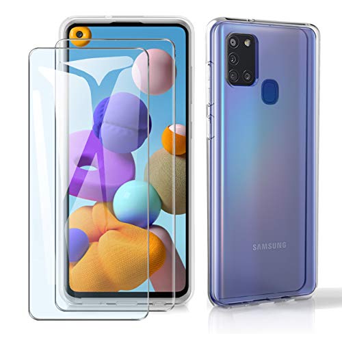 Perfetta Set: Cover Samsung Galaxy A21s Custodia + 2 Pezzi Premium teggi-schermo in Vetro Pellicola, tezione Posteriore + tezione Anteriore