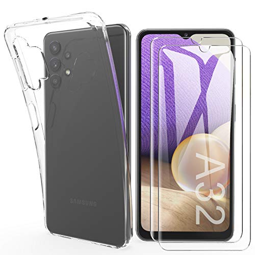 Perfetta Set: Cover Samsung Galaxy A32 5G Custodia + 2 Pezzi Premium teggi-schermo in Vetro Pellicola,tezione Posteriore + tezione Anteriore