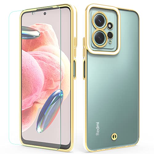 HTDELEC Cover per Xiaomi Redmi Note 12 4G + Pellicola Vetro Temperato,Custodia Trasparente TPU Silicone Antiurto Placcatura Bumper Case per Xiaomi Redmi Note 12 4G - Bianco