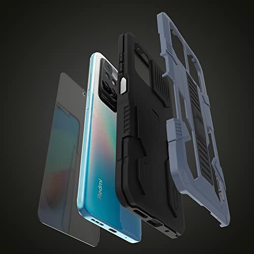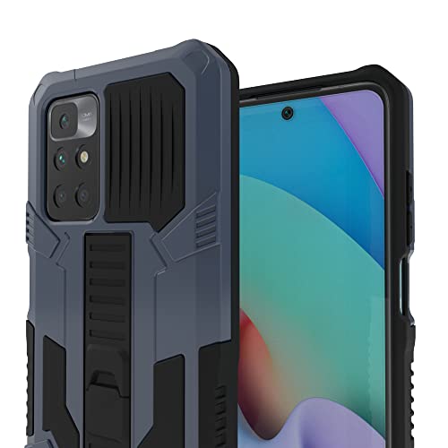 HTDELEC Cover per Xiaomi Redmi 10 con 2 Pezzi Pellicola Vetro Temperato,Custodia in Silicone cavalletto Antiurto Armatura Case - Blu