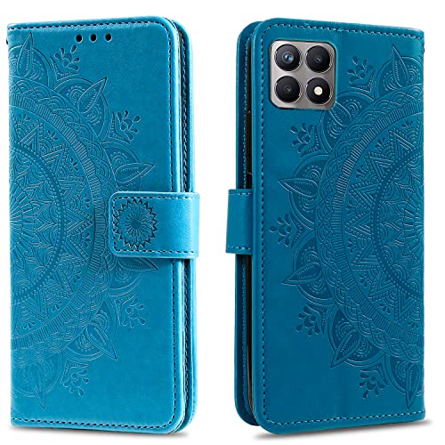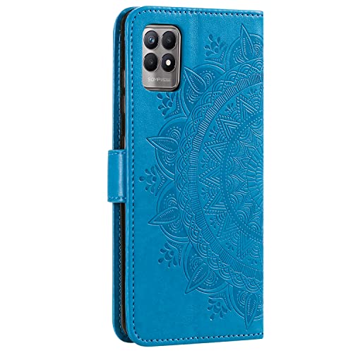 HTDELEC Custodia per Realme 8i,Flip Cover a Libro Realme 8i,Magnetica Portafoglio Protettiva in pelle Realme 8i (T-Blu)