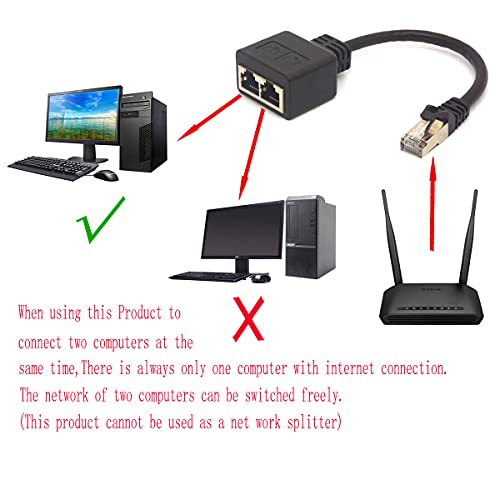 HTGuoji RJ45 Cavo adattatore RJ45 maschio a doppia femmina Adattatore Extender Supporto Ethernet Cat 5/CAT 6 LAN per la commutazione di reti tra due computer (non utilizzato come splitter di rete)