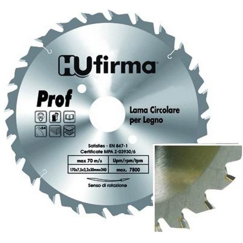 Codice: 8011779076563 Marca: HUFIRMA. Hu-Firma Lame Circolari Legno 24 Denti Mm.170
